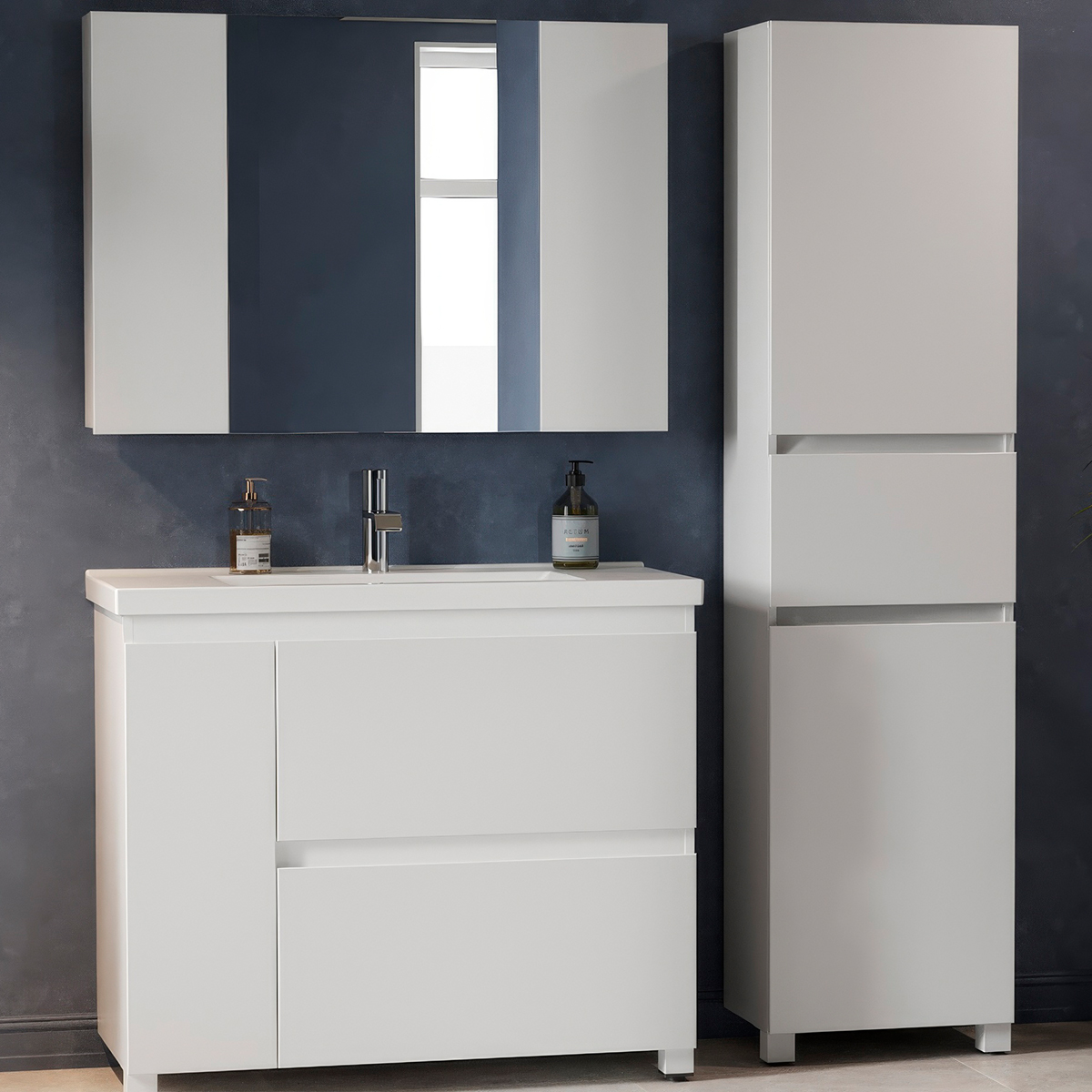 Коллекция мебели Неаполь также включает напольную тумбу Неаполь 100 и зеркальный шкаф шириной 100 см. Наличие в коллекции тумбы, зеркального шкафа и шкафов позволяет сделать интерьер гармоничным и завершенным.