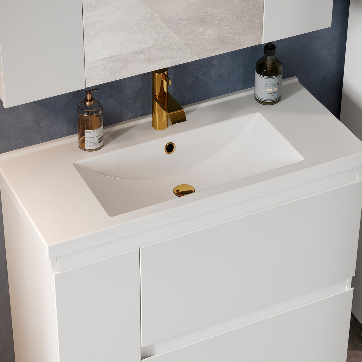 Тумба Неаполь комплектуется стильным и практичным керамическим умывальником Тобаго 100 торговой марки КЕРАМИН, что обеспечивает идеальное сочетание форм и материалов, подчеркивающее элегантность коллекции.