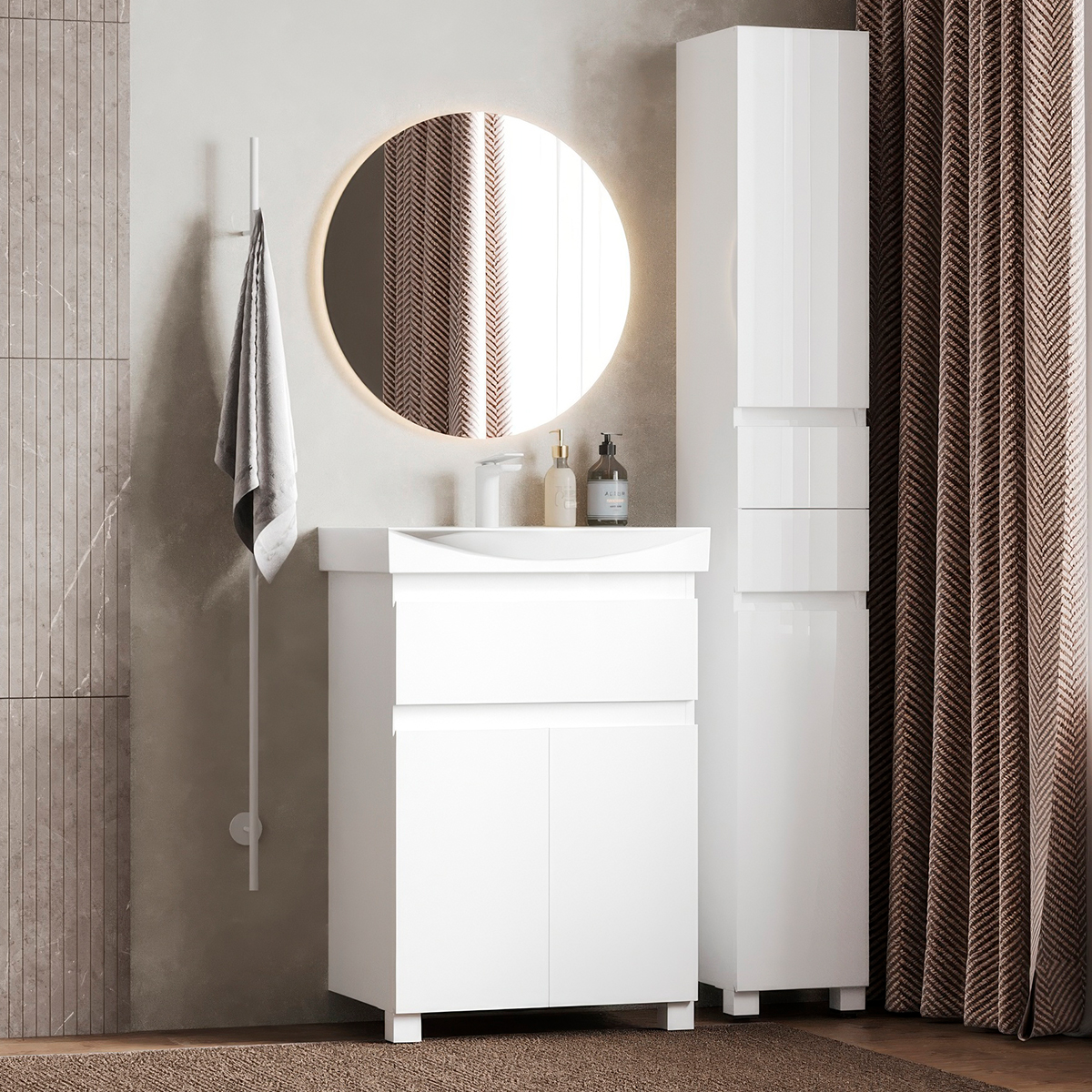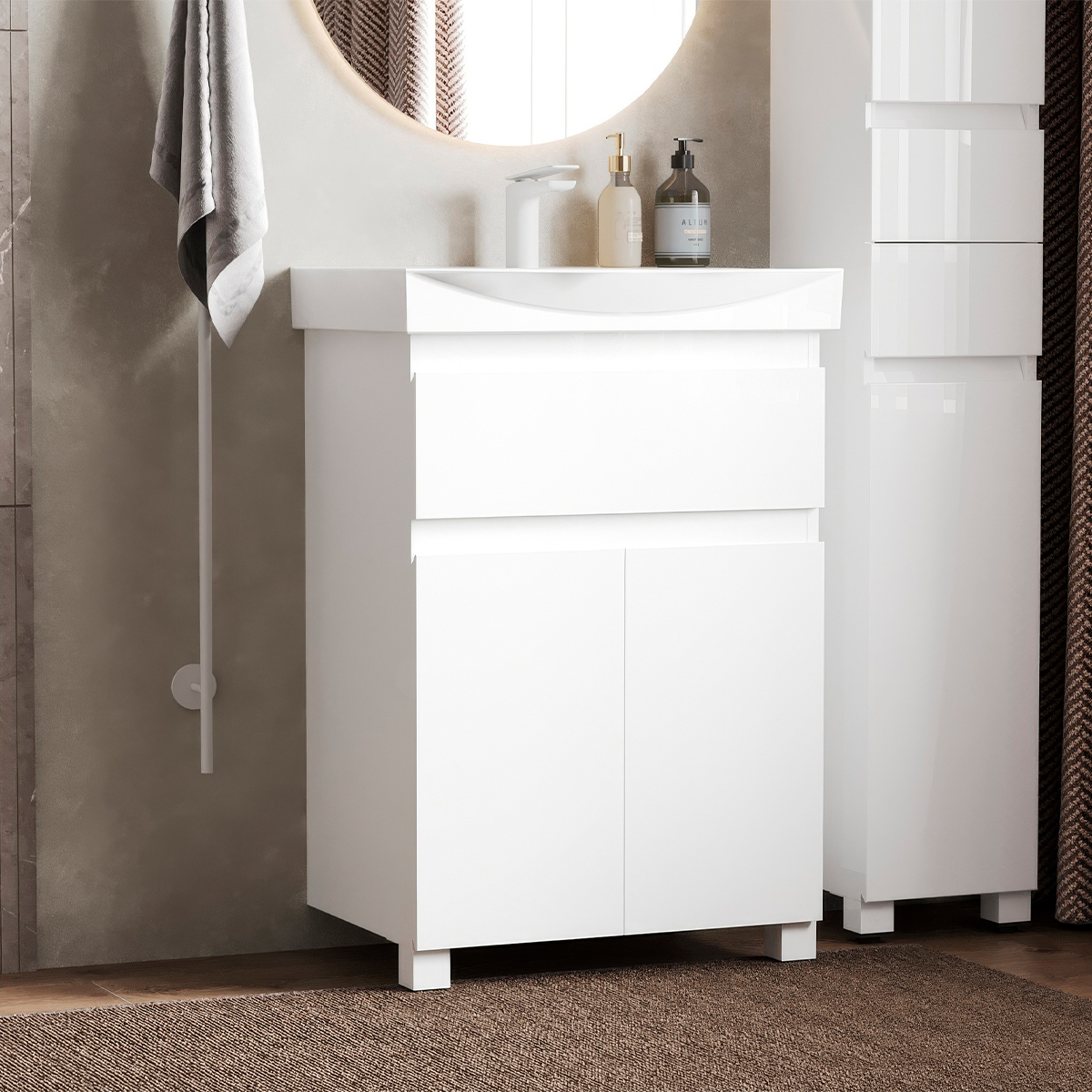 Премиальная напольная тумба Неаполь шириной 60 см — это функциональное и стильное решение для любого интерьера ванной комнаты.