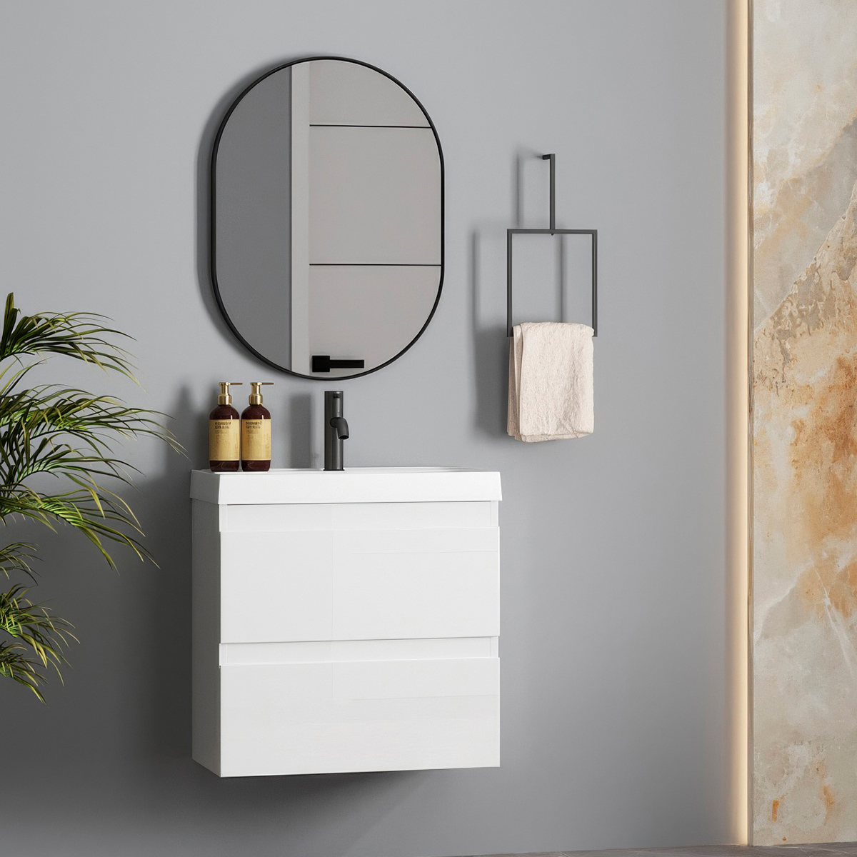 Тумба Остин предлагается шириной 60 см и сочетается с умывальником Бостон 600 BELUX.