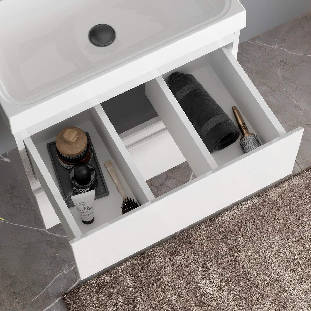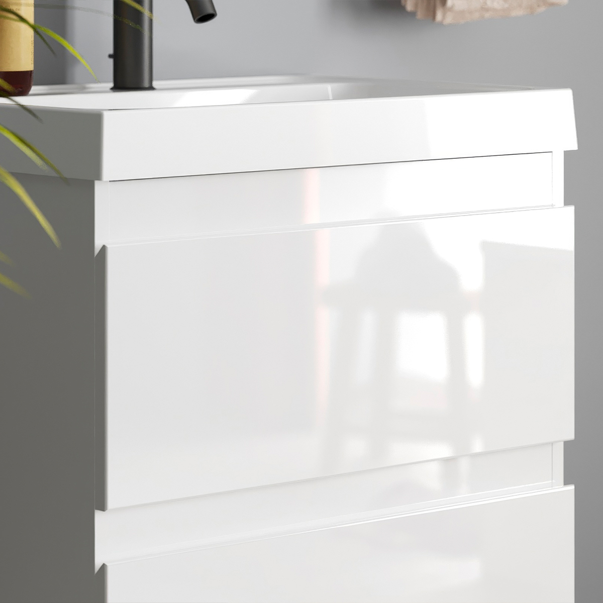 Фасады тумбы выполнены из высококачественного МДФ производства EGGER. Боковины корпуса тумбы, как и фасады, окрашены глянцевой эмалью. 5-слойное покрытие увеличивает влагостойкость и срок службы изделий.