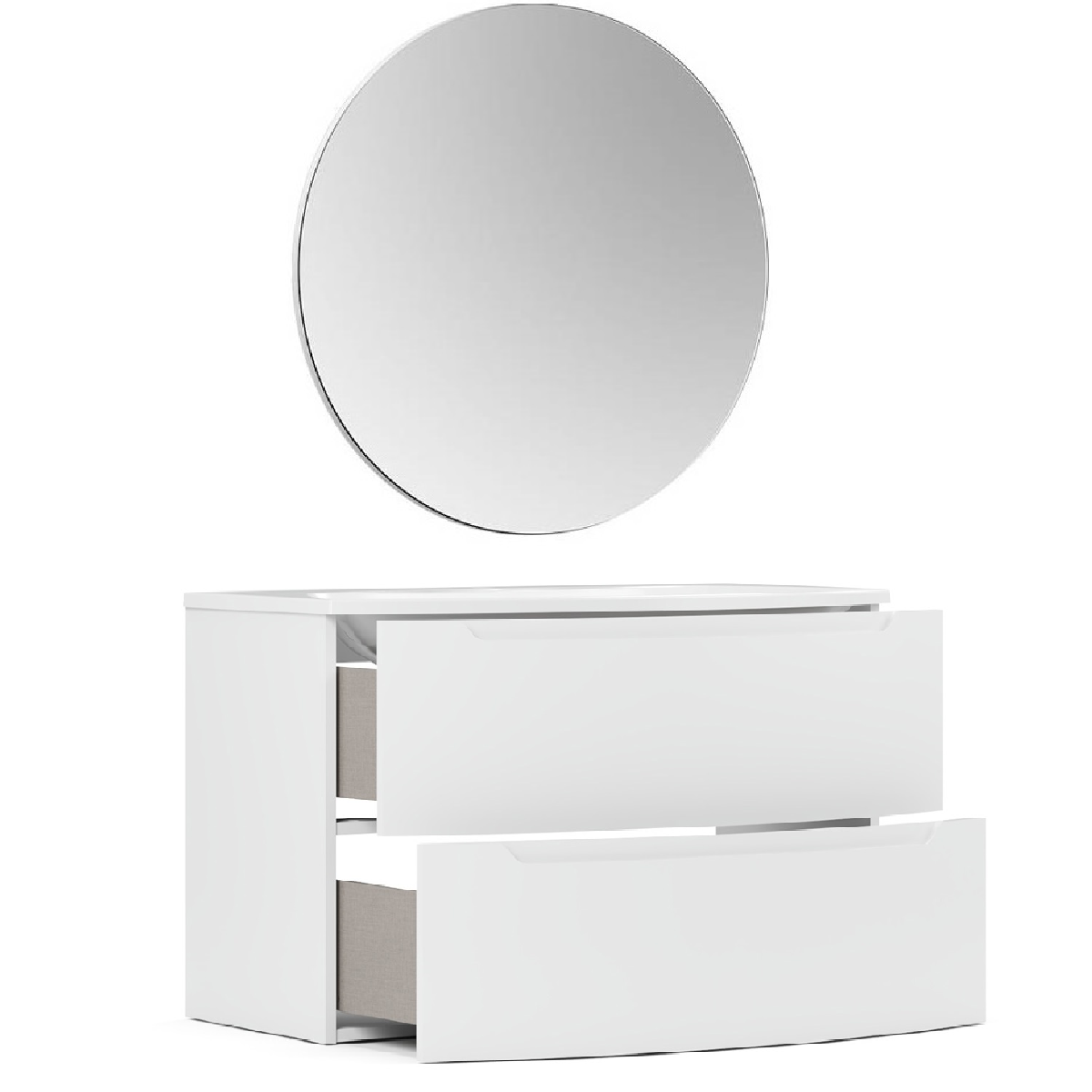 Выдвижные ящики оснащены механизмами плавного закрытия. Детали мебели покрыты пятью слоями высокоглянцевой эмали европейских производителей.