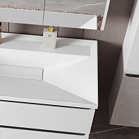 Также умывальники этой коллекции можно использовать в качестве врезных. Такие модели можно разместить в любом месте столешницы, выполненной из любого материала.
