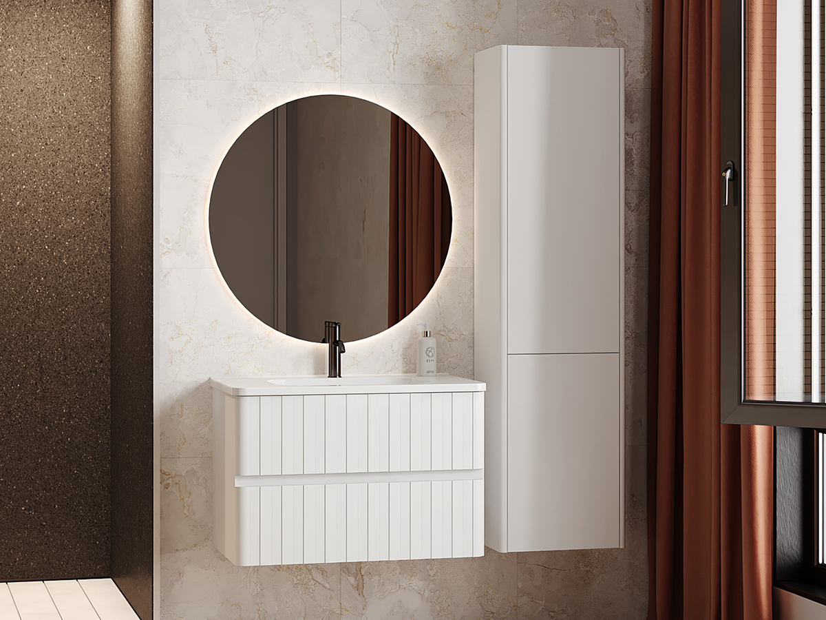 Тумба подвесная ОСЛО 80-02 - это современный элемент мебели для ванной комнаты в минималистичном стиле.
