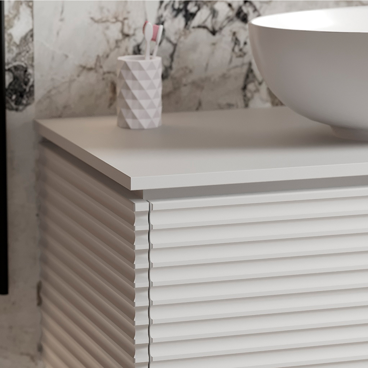 Столешницы ТМ BELUX из SOLID SURFACE имеют белую матовую поверхность с soft-touch эффектом. Они простоты в уходе: для ежедневного ухода подходят любые необразивные гелеобразные средства. Для ежедневного ухода рекомендуем использовать «Средство чистящее для сантехники и кафельной плитки «CLEANLUX».