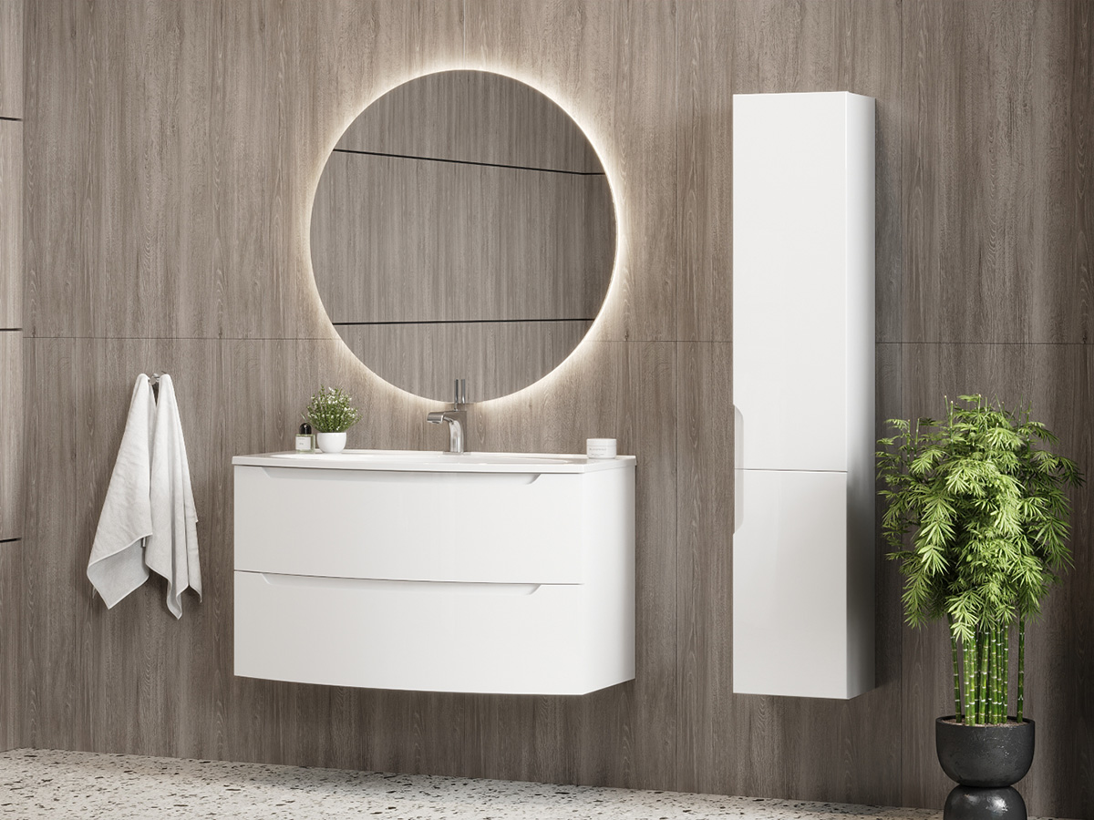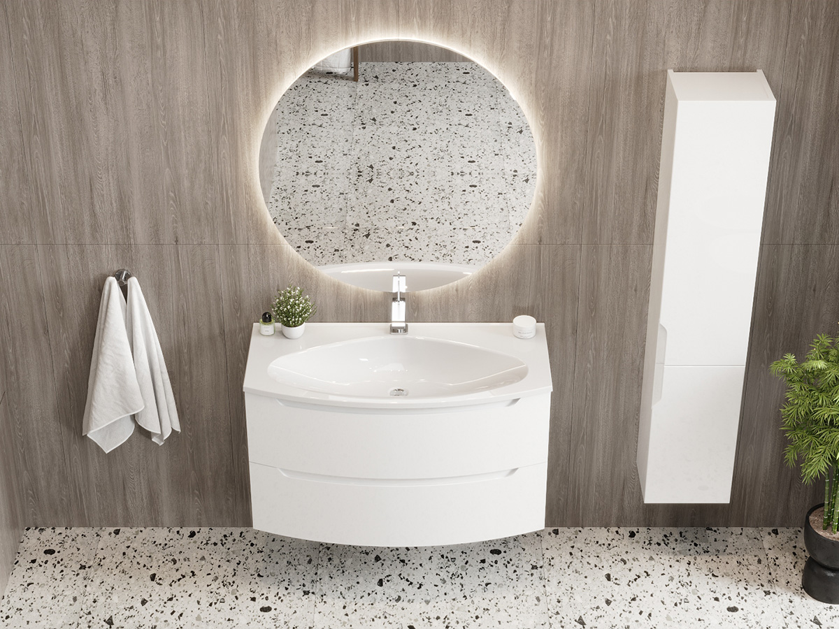 Фасады тумб коллекции Ганновер выполнены по уникальной технологии гнутья. Компания BELUX — единственная в Беларуси, которая применяет эту технологию в серийном производстве для мебели с радиусными фасадами. Такое инновационное решение придает мебели визуальный объем и завершенность, а также изящно вторит округлым формам умывальника.