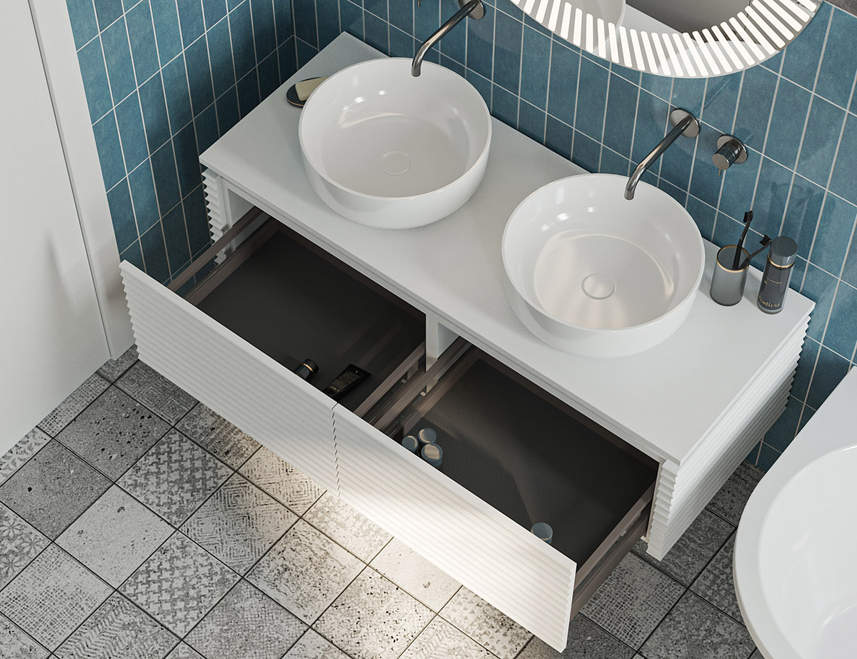 Сенсорная подсветка в тумбах коллекции Дубай подчеркивает изящный фасад изделий со всех сторон, а также обеспечивает функциональность и эстетику.