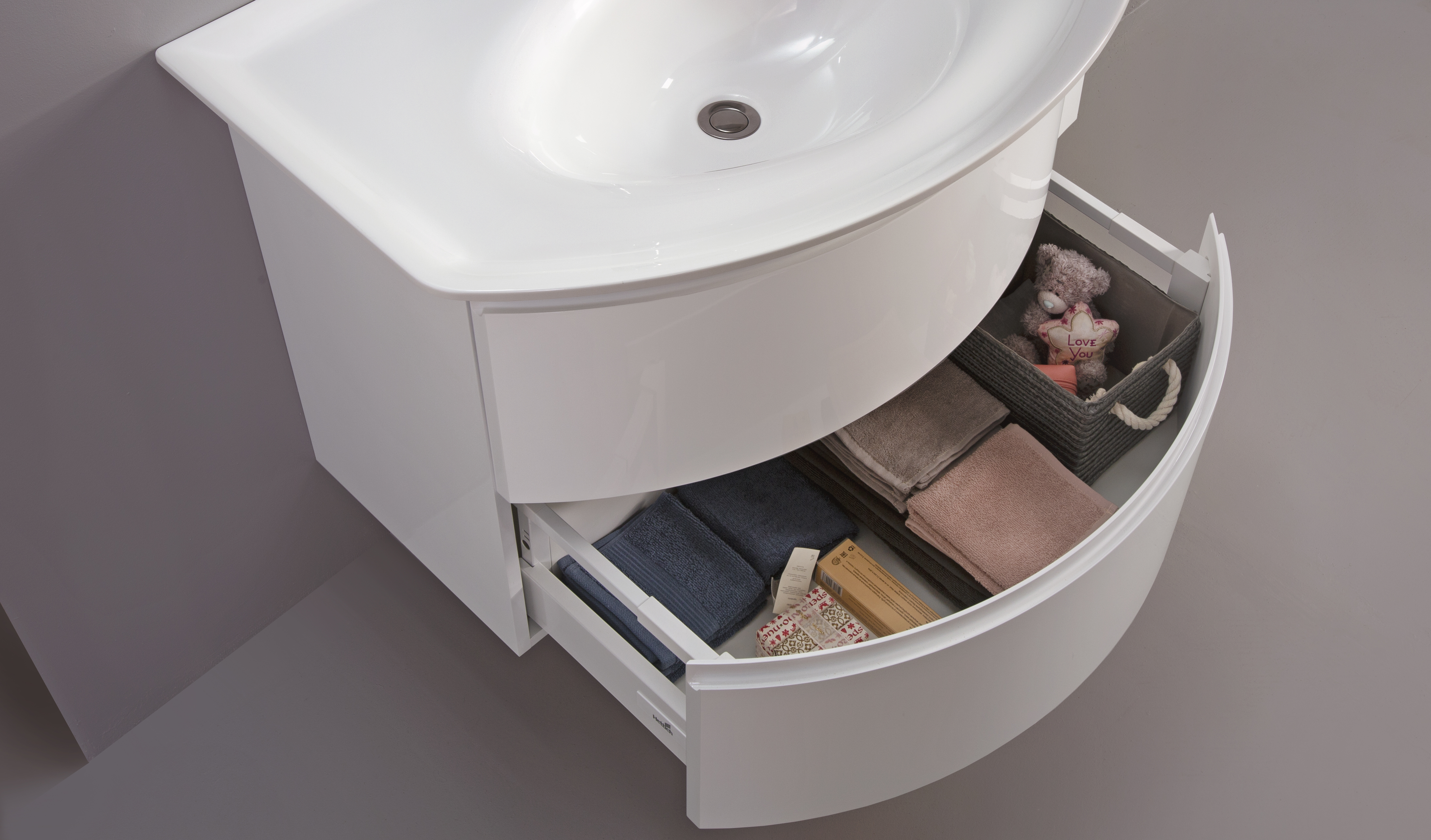 Тумба имеет эргономичный дизайн, создать который позволила новая технология гнутоклееных элементов. Оригинальные конструктивные решения придают коллекции неповторимую уникальность.