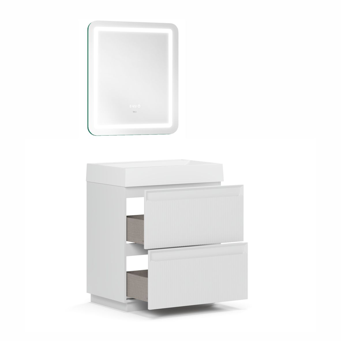 Изюминка коллекции - фасады. Вертикальные линии создают элегантность и подчеркивают уникальность мебели. Интегрированная ручка на фасаде не только придает тумбе эстетическое преимущество, но и обеспечивает комфортное открывание и закрывание ящиков, а также добавляет легкости и воздушности.