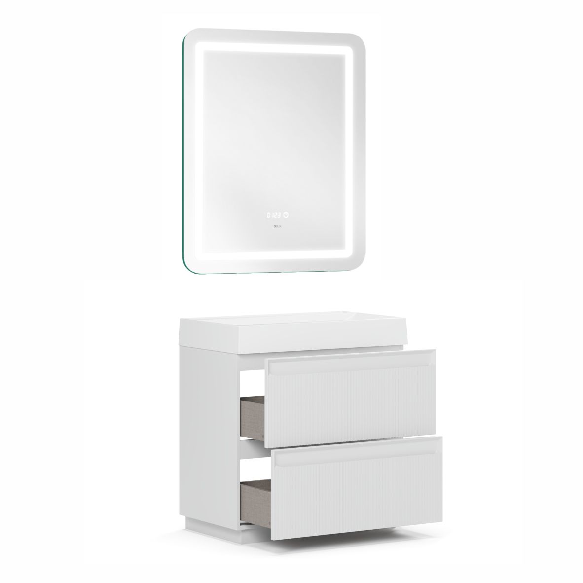 Изюминка коллекции - фасады. Вертикальные линии создают элегантность и подчеркивают уникальность мебели. Интегрированная ручка на фасаде не только придает тумбе эстетическое преимущество, но и обеспечивает комфортное открывание и закрывание ящиков, а также добавляет легкости и воздушности.