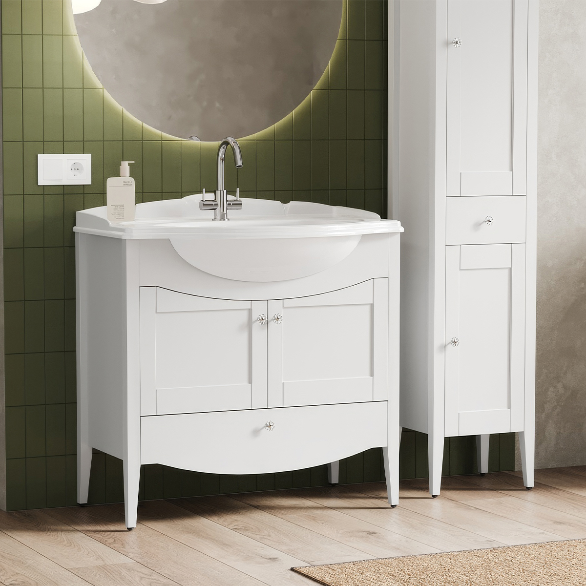 Умывальники коллекции Рояль можно установить на мебель. Коллекция мебели Афины ТМ BELUX также выполненная в неоклассическом стиле создаст гармоничный и завершенный интерьер Вашей ванной комнаты.