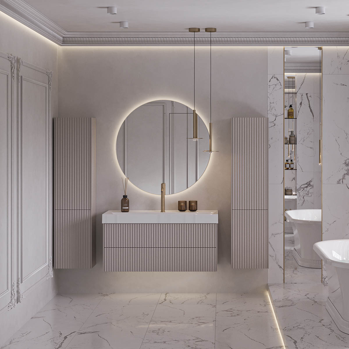 Отличительной чертой всех изделий коллекции Триумф является возможность их монтажа в консольном (подвесном) варианте. Подобное решение позволяет в ванных комнатах создать более легкий и воздушный дизайн.